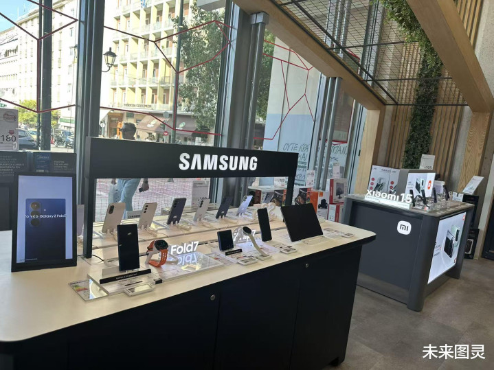 雅典街头的一家3C卖场里,小米与三星被摆在显要位置 雅典街头的一家3C卖场里,小米与三星被摆在显要位置